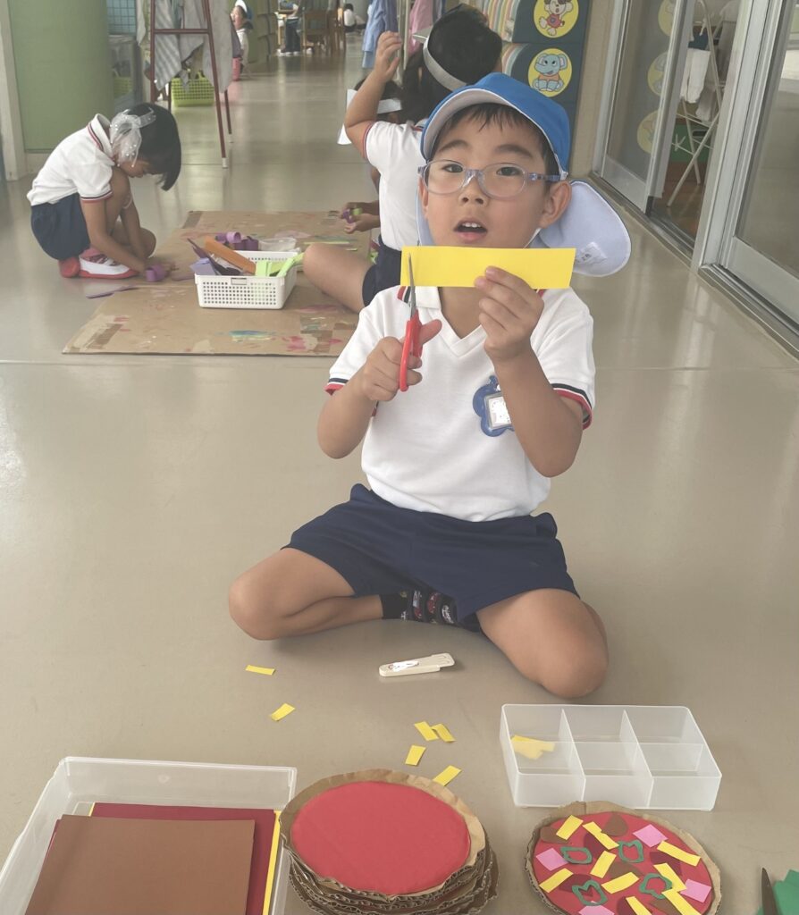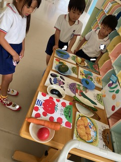 「次はピザ屋さんがしたい!」何の具があるのか、みんなで相談して準備をしているよ!