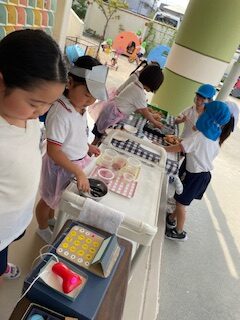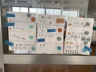 手作りの財布から百円を出して、お金のやりとりもしているよ!