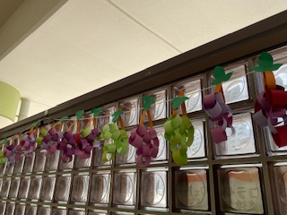 画用紙の輪つなぎをいくつか繋げてぶどうの形にするよ!