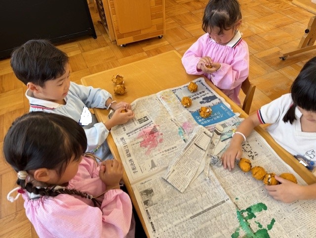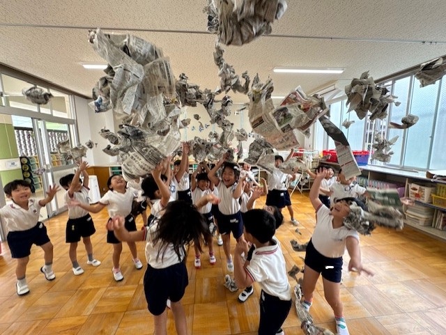 製作の前に、新聞紙で思う存分遊んだよ!