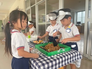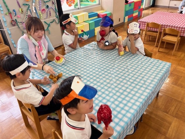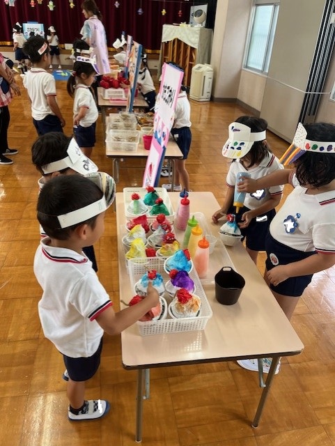 「何味がいいですか?」「おススメは〇〇」お店屋さんになりきっています!