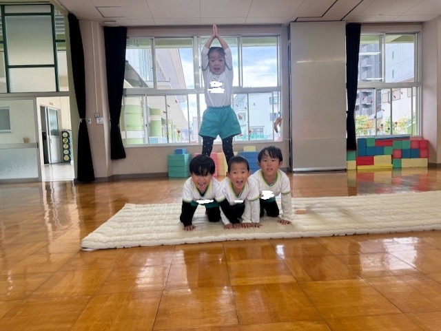 年長さんの組体操に憧れて、技を真似っこ♪