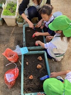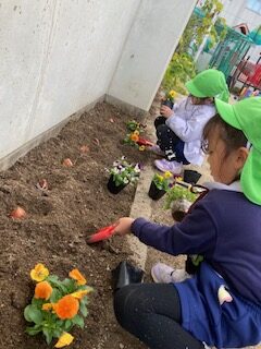 園庭の花壇にお花と球根を植えたよ!花壇が一気に華やかになったね♪