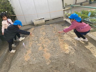 秋に植えた玉ねぎの苗に、もみ殻のお布団をかけて寒くないようにしたよ!