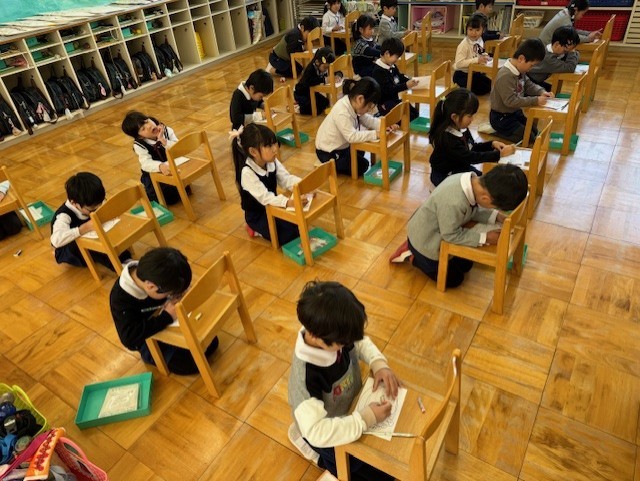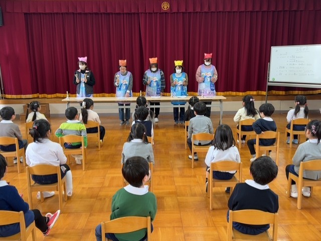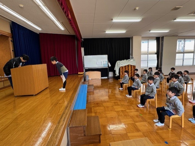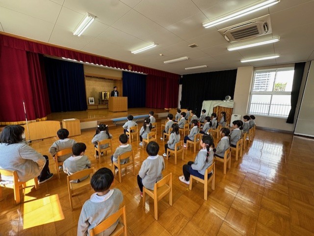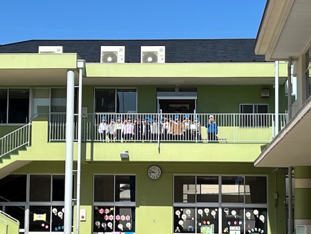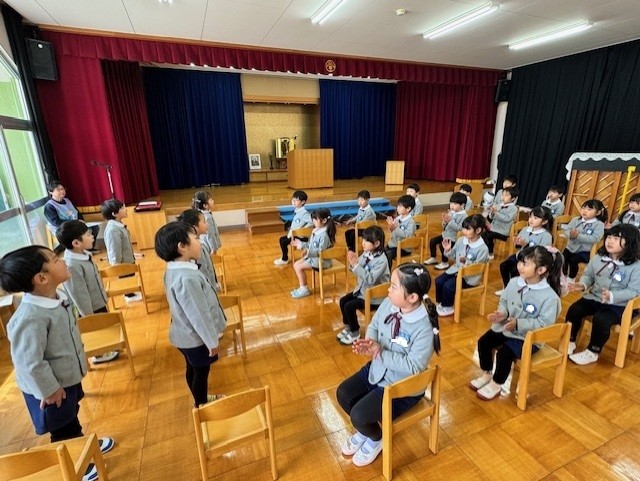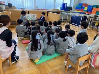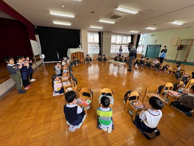 最後はみんなで放送当番。年長さん、毎日ありがとうございました!!