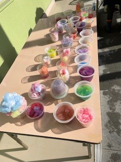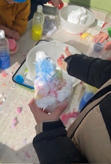 たくさん雪が降って、雪と色水でかき氷作りをしたよ!「冷た~い♡」