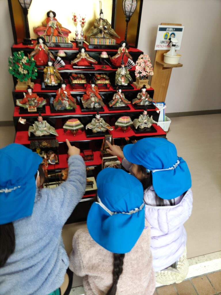 『ひなまつり』の歌を歌いながら「これがぼんぼり?」「赤いお顔だ!」と興味津々!!