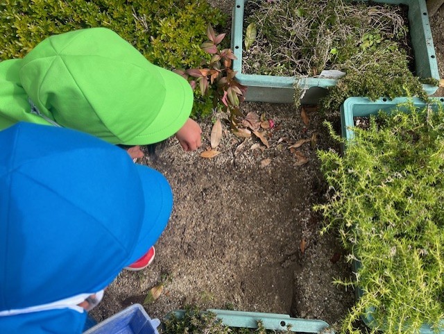 暖かくなり、園庭で虫探し!「ダンゴムシ、見~つけた♡」