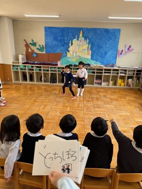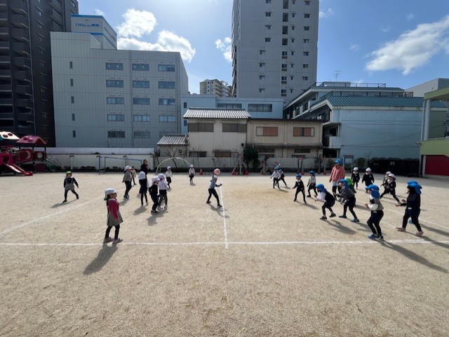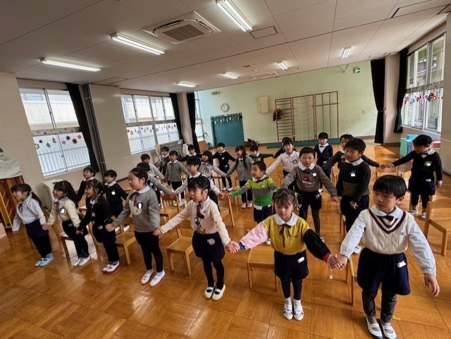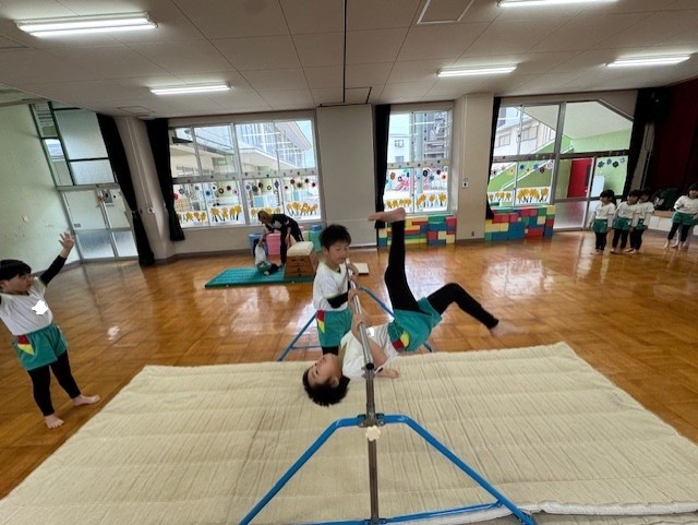 幼稚園最後の体操教室。くるっと回って・・・