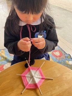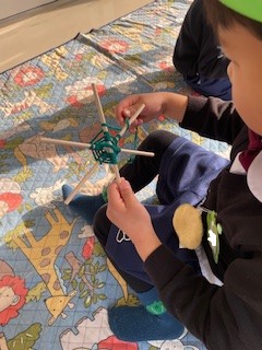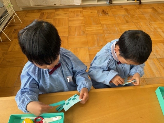 画用紙を通していくよ。『上・下・上・下・・・』規則性が分かって面白かったね!