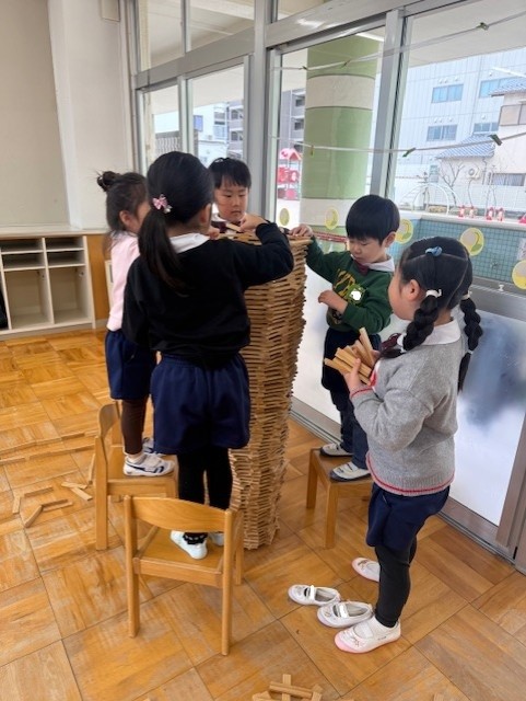 異年齢で一緒に楽しんでいるよ!みんなで協力してどんどん高くなってきたね!!