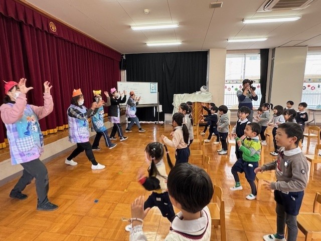 先生たちの出し物『ねこのおいしゃさん』のダンス。みんなも一緒に踊って楽しかったね!!