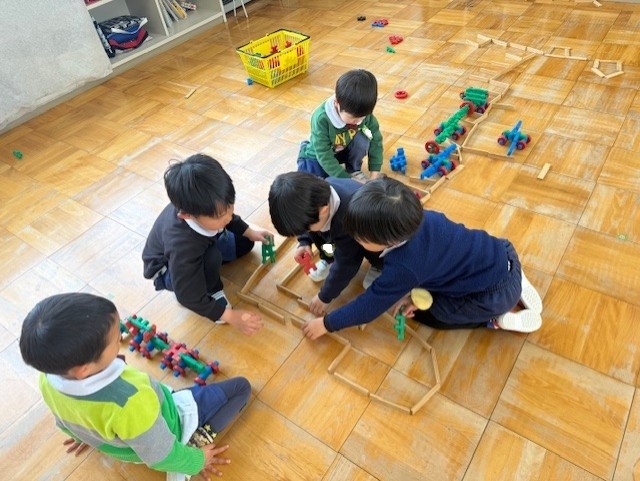 駐車場や車に見立てながら、友だちと楽しく遊んでいます!
